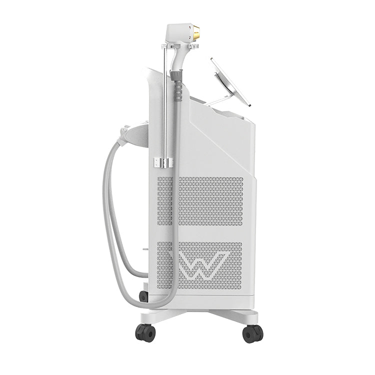 - 4 Wavelength diode laser hair removal machine system, Suitable for all hair types and skin tones: The 4-wavelength system offers a range of wavelengths, including 755nm, 808nm, 940nm, and 1064nm, which are specifically tailored for different skin tones and hair types. The 755nm wavelength is ideal for light hairs on white skin, the 808nm wavelength is effective for black hairs on yellow skin, and the 1064nm wavelength targets deep-rooted hairs on darker skin. This customized wavelength selection ensures precise and effective hair removal for diverse clients.